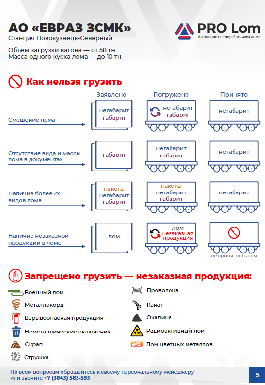 Памятка по незаказному лому поможет вам разобраться, какую продукцию можно грузить, а какую не стоит. А также подскажет как правильно подготовить лом, чтобы приёмка прошла максимально успешно.