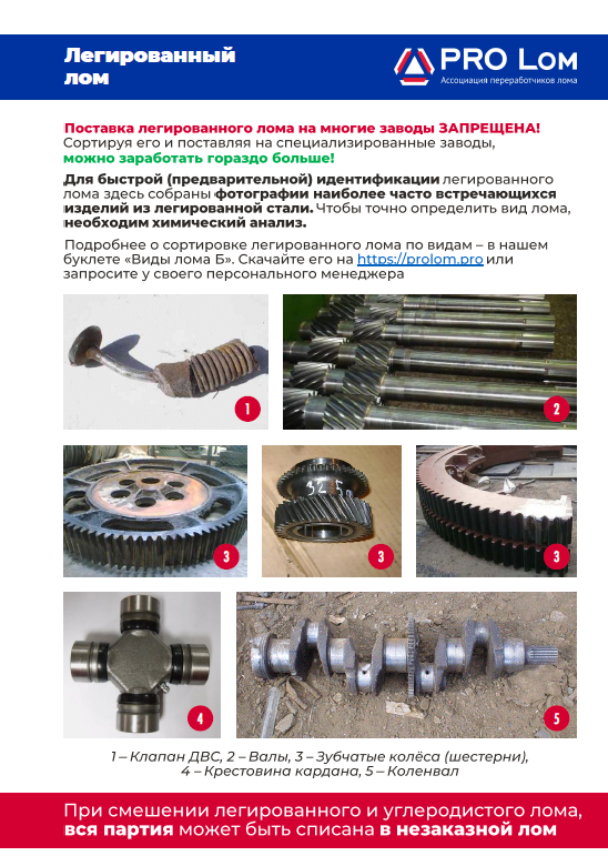 Для быстрой (предварительной) идентификации вида лома мы подготовили буклет с фотографиями наиболее распространённых изделий. Заполните форму и получите буклет по видам лома Б.