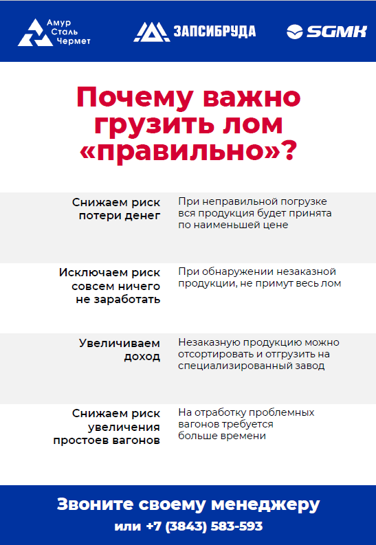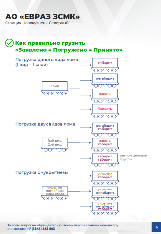 Правильная погрузка лома в транспортное средство снизит риск того, что весь объём лома будет акцептован по цене низшего вида или его не примут вовсе. Заполните форму и получите буклет с подробной информацией.